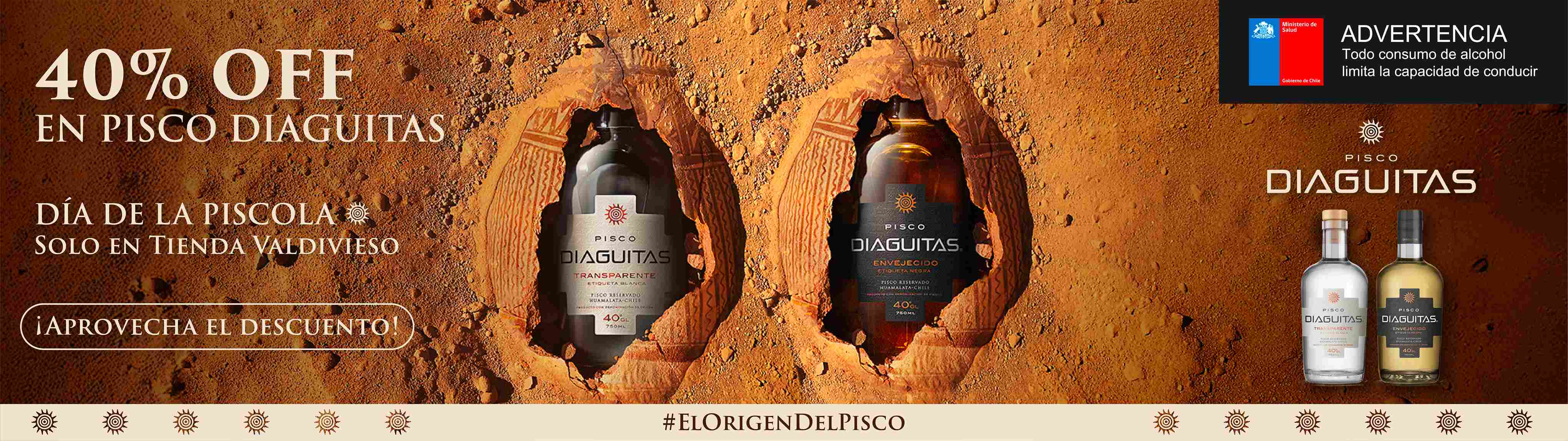 Pisco Diaguitas 40° Transparente 750cc con Estuche